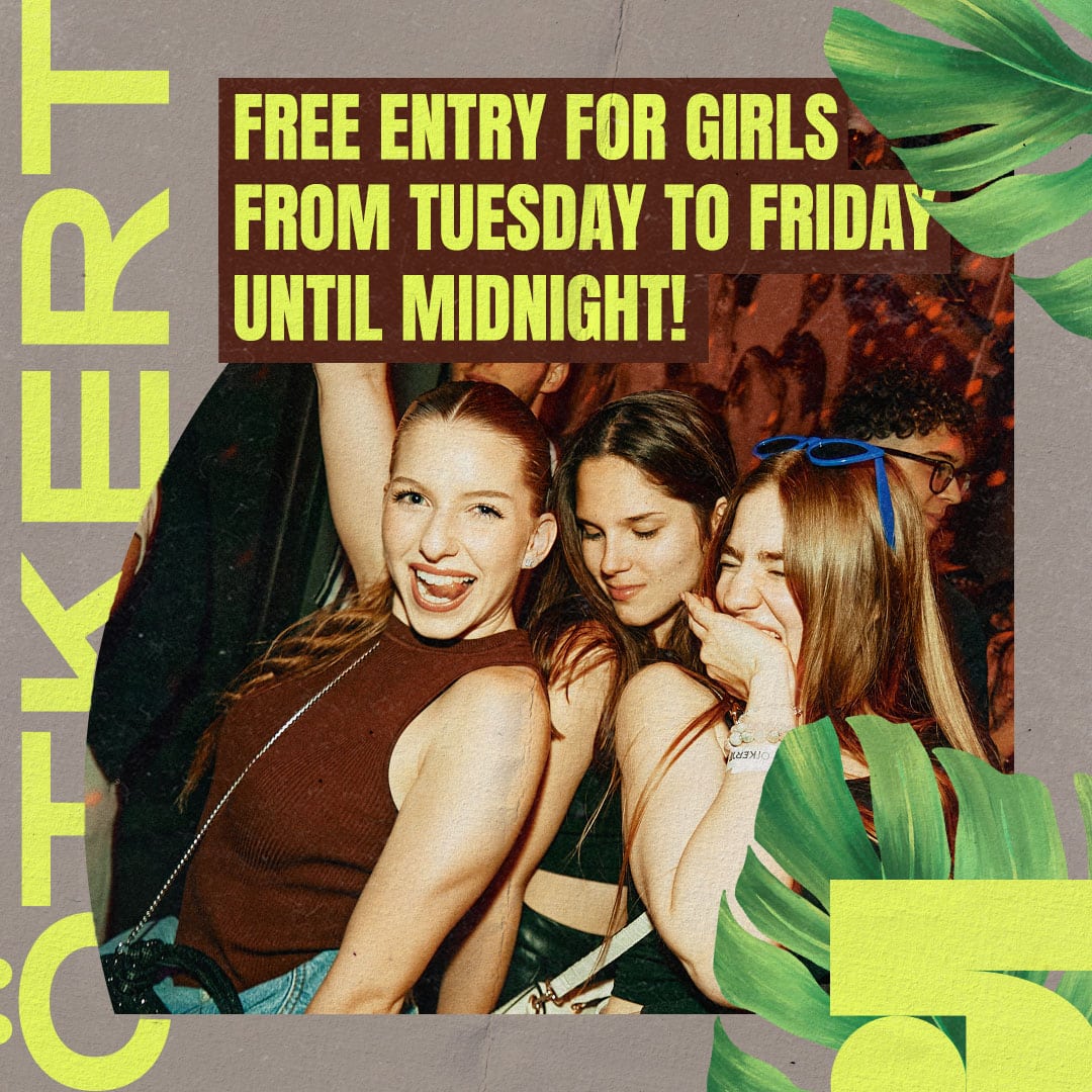 Hey ladies, listen up! We’ve got your back this year too! Special offers await you throughout the summer season! Entry is free for you every weekday until midnight. Just show up and stroll onto Ötkert’s dance floor. And guess what? Saturdays come with discounts too, making your weekend unforgettable. Come join the fun because this summer is all about you!